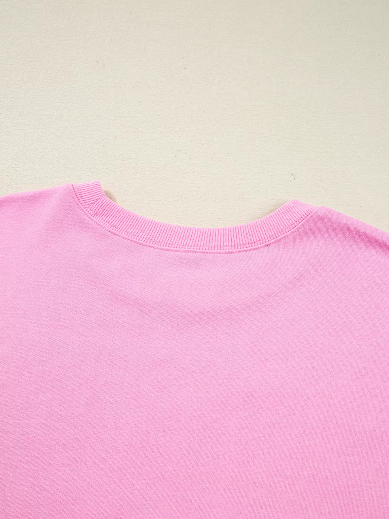 Sequin XOXO Letter Graphic Exposed Seam Baggy Sweatshirt