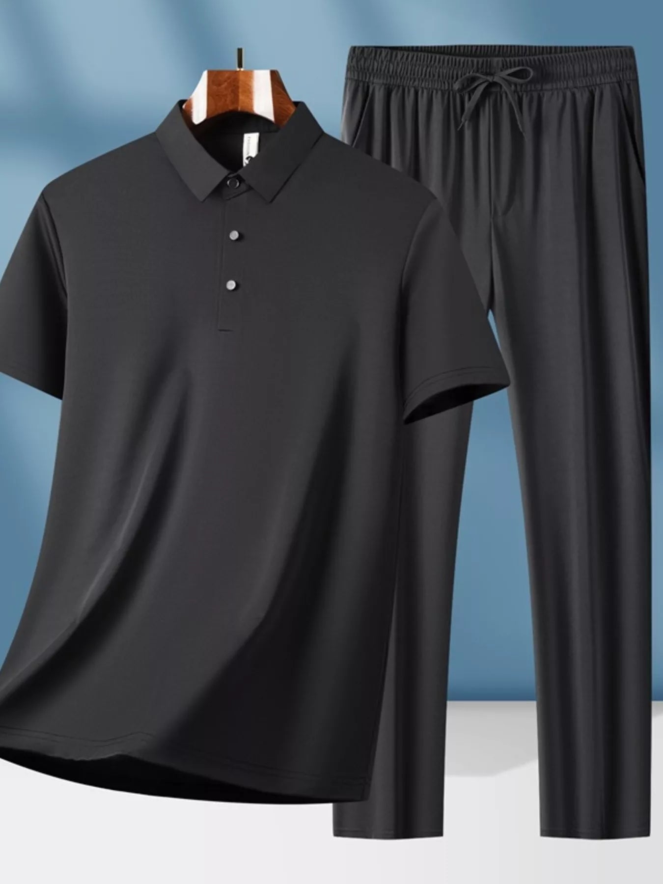 Men's Plus Size Button Detail Short Sleeve Top and Pants Set