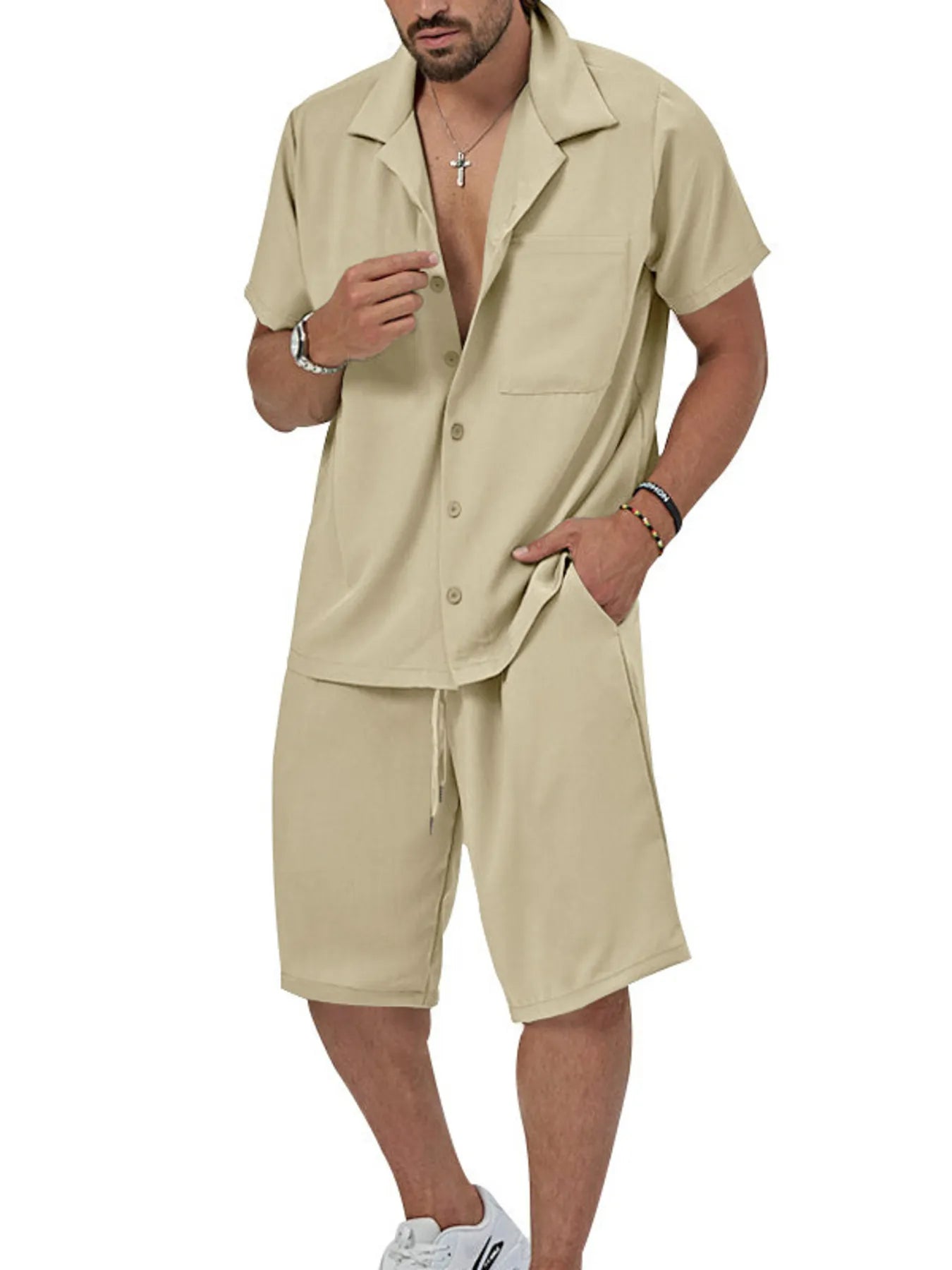 Men's Plus Size Button Up Short Sleeve Shirt and Shorts Set