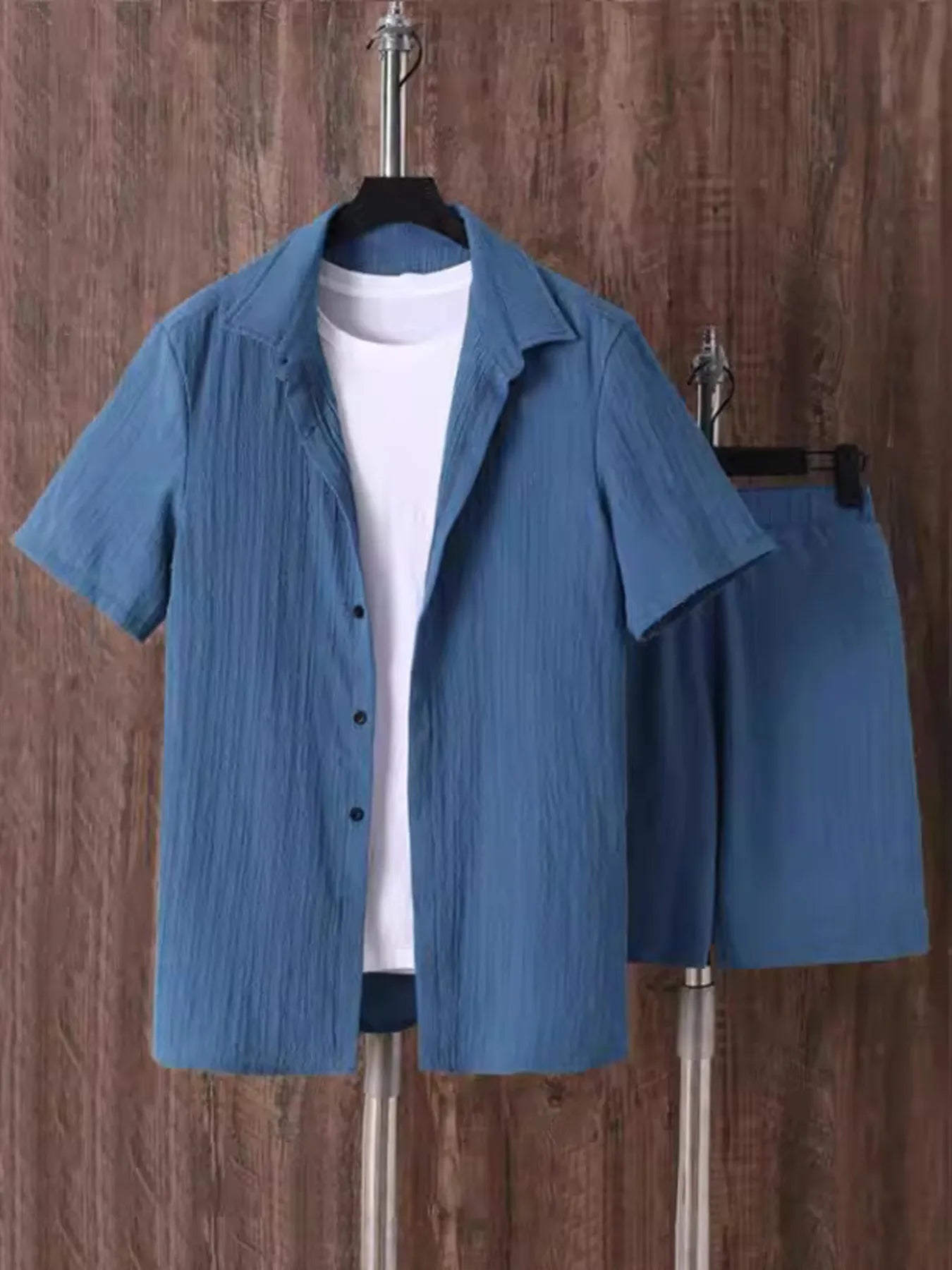 Men's Plus Size Button Up Short Sleeve Shirt and Shorts Set