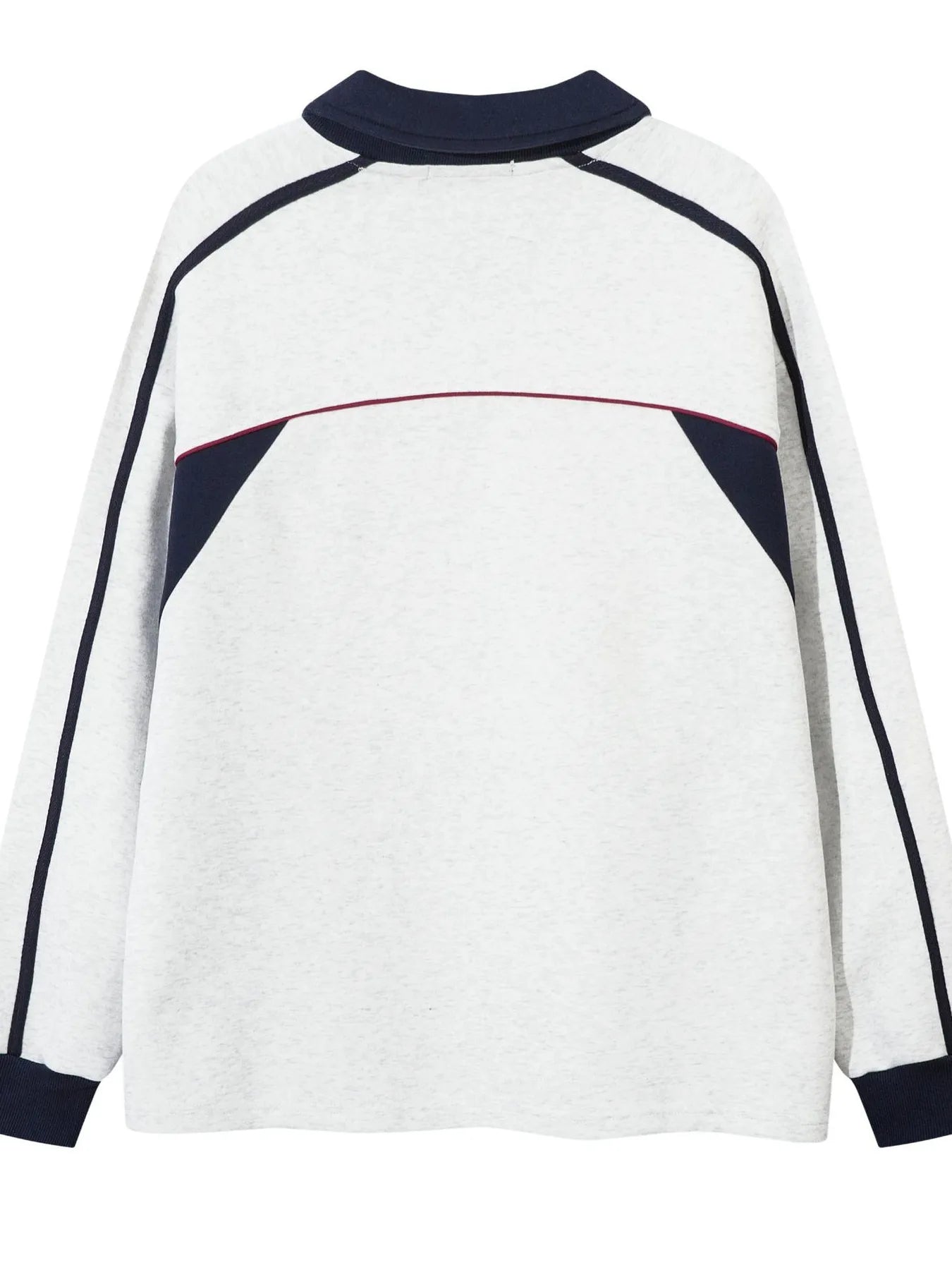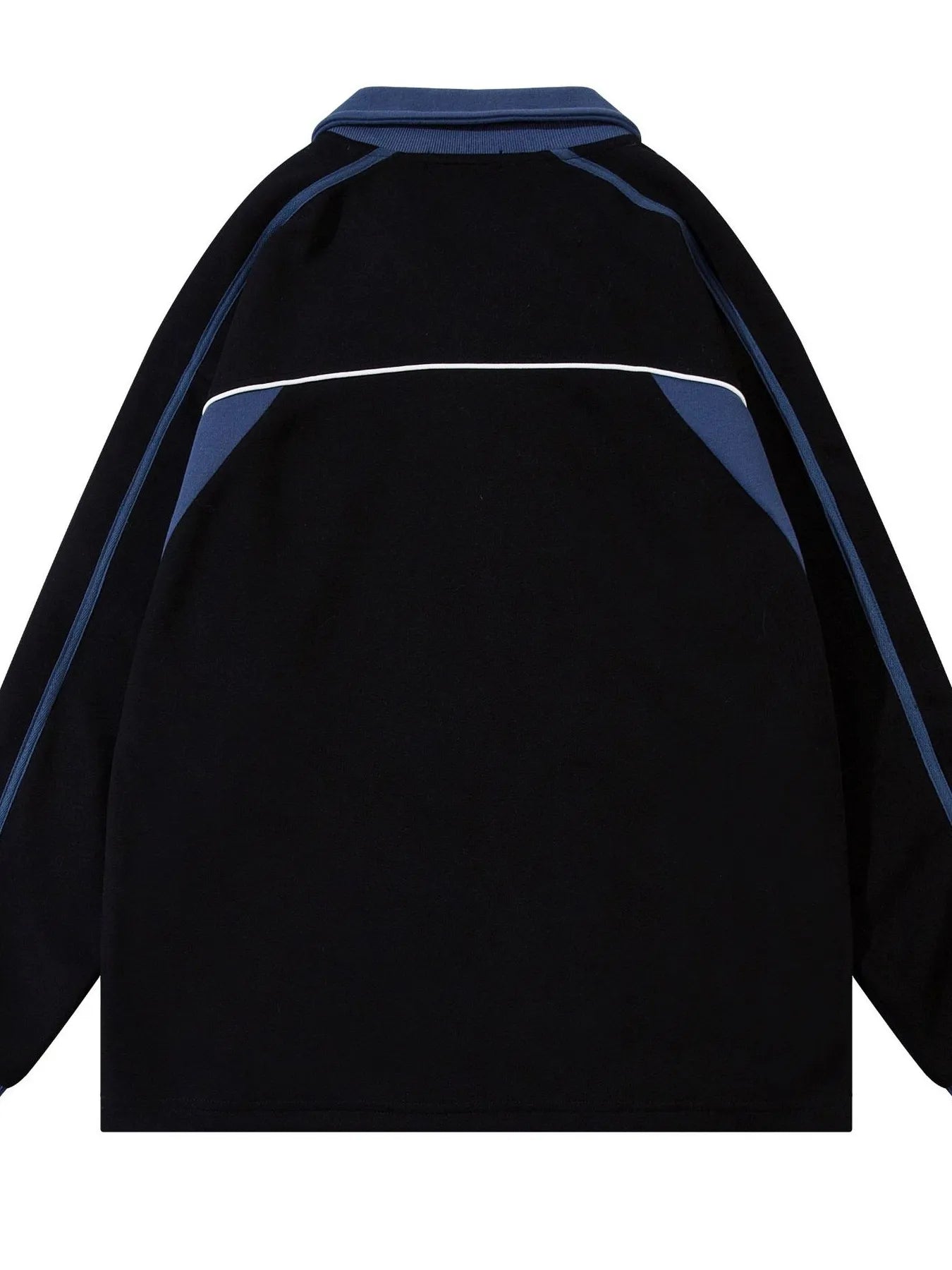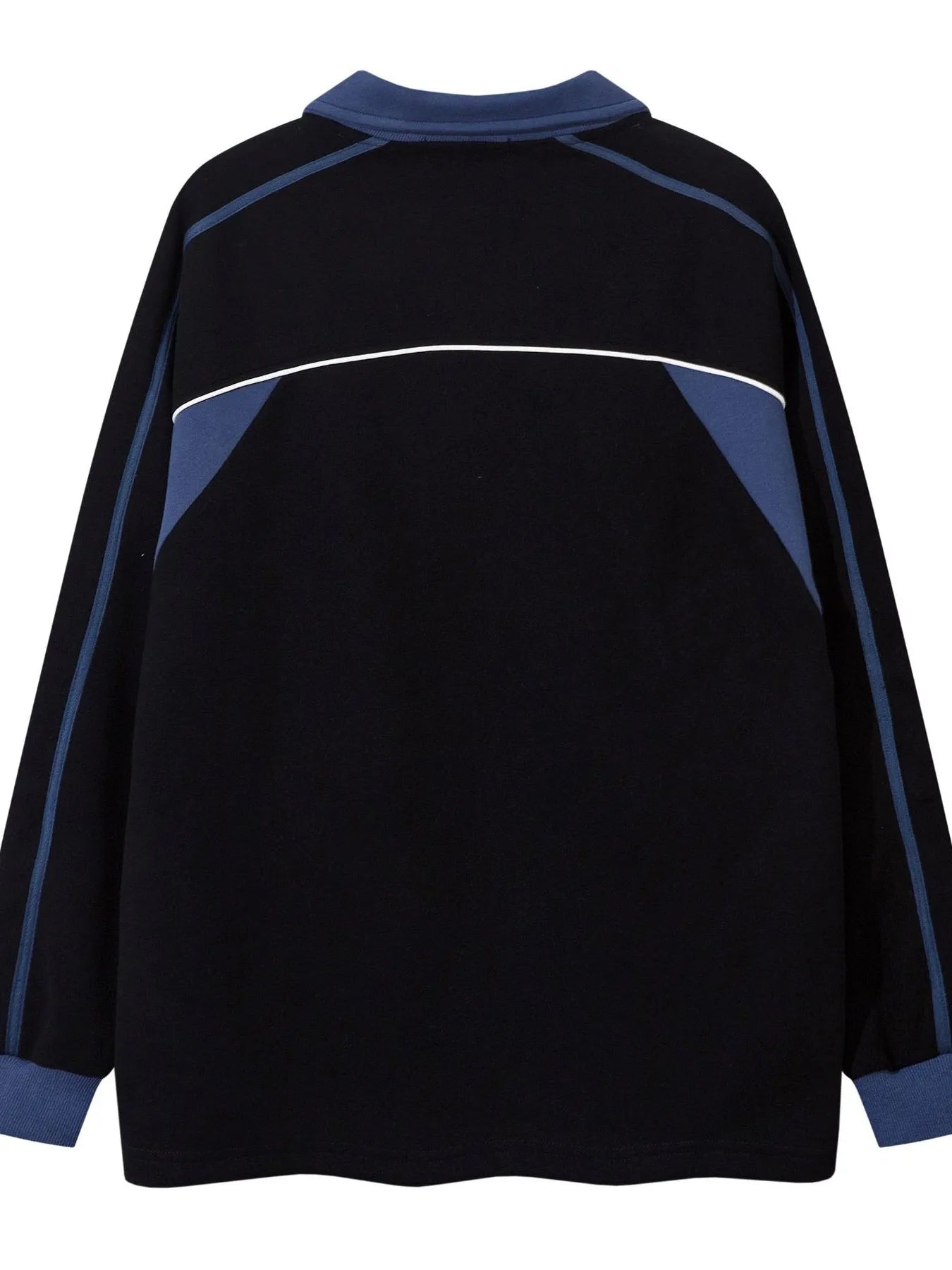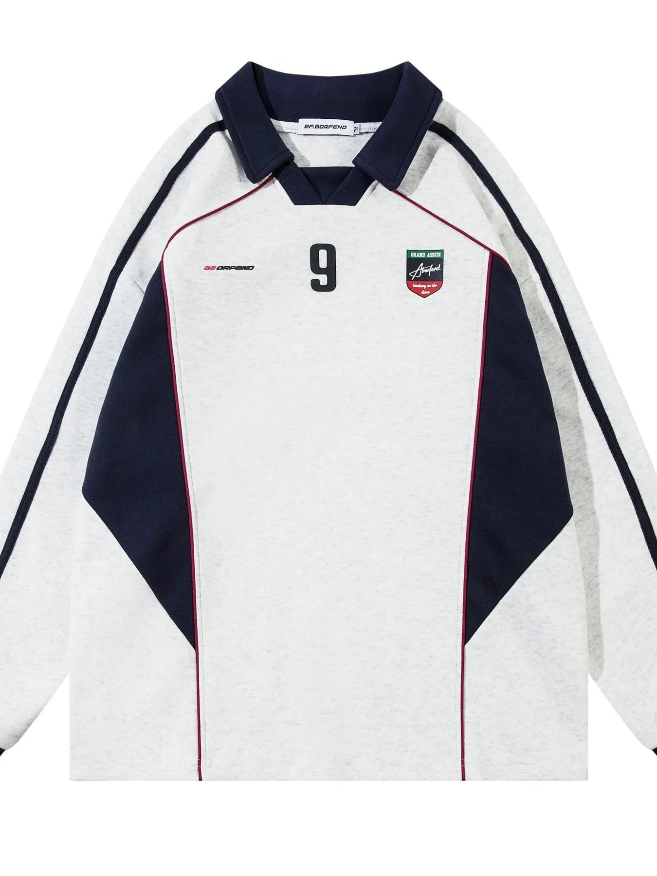 Men's Color Block Long Sleeve Polo with Number 9 Graphic