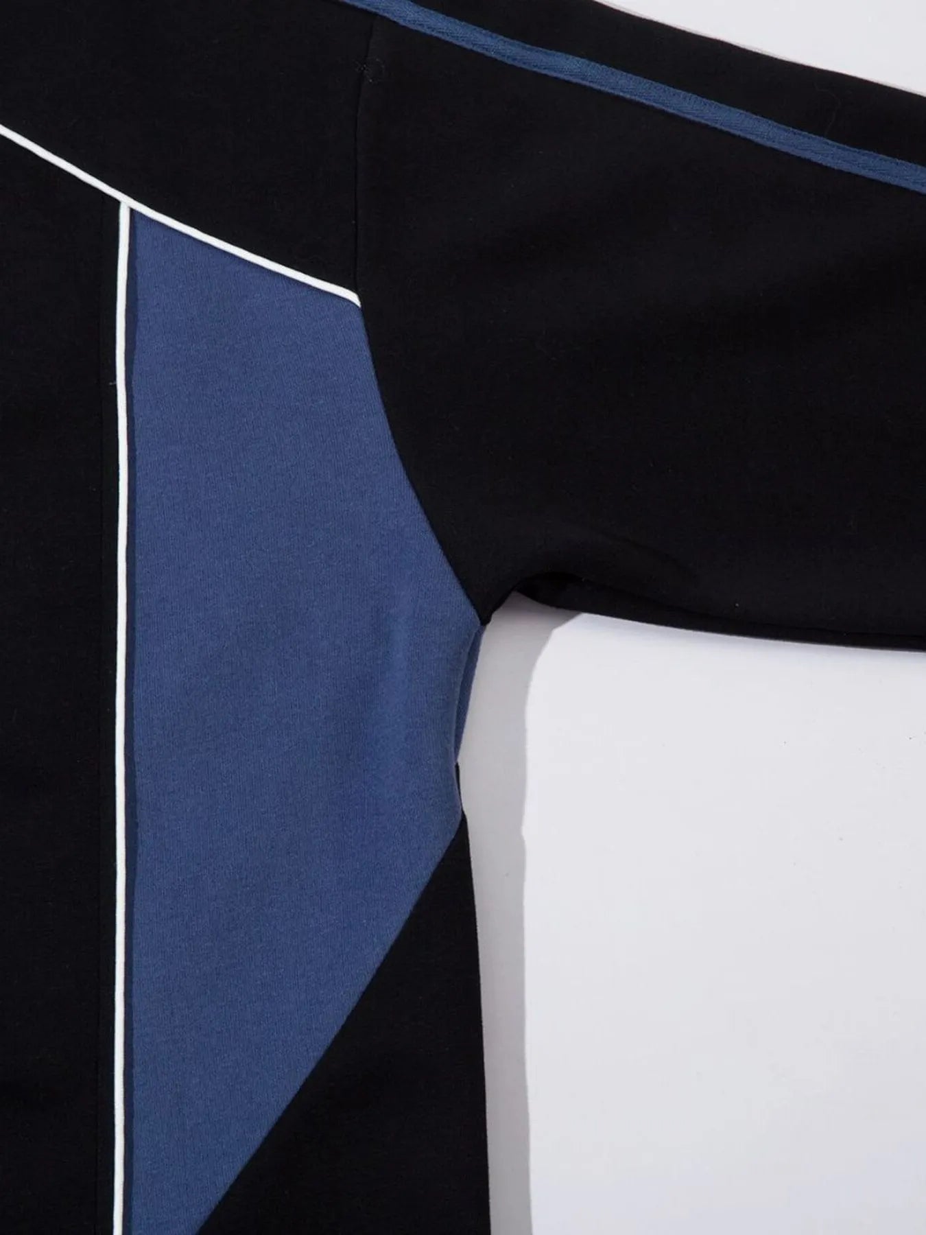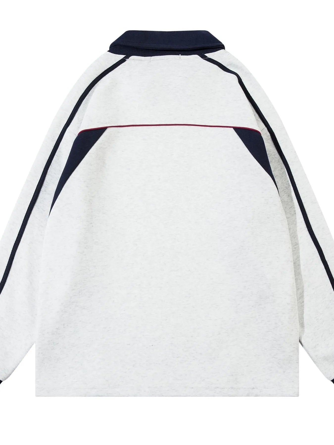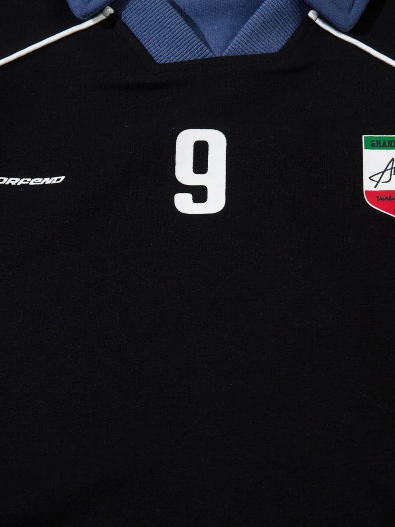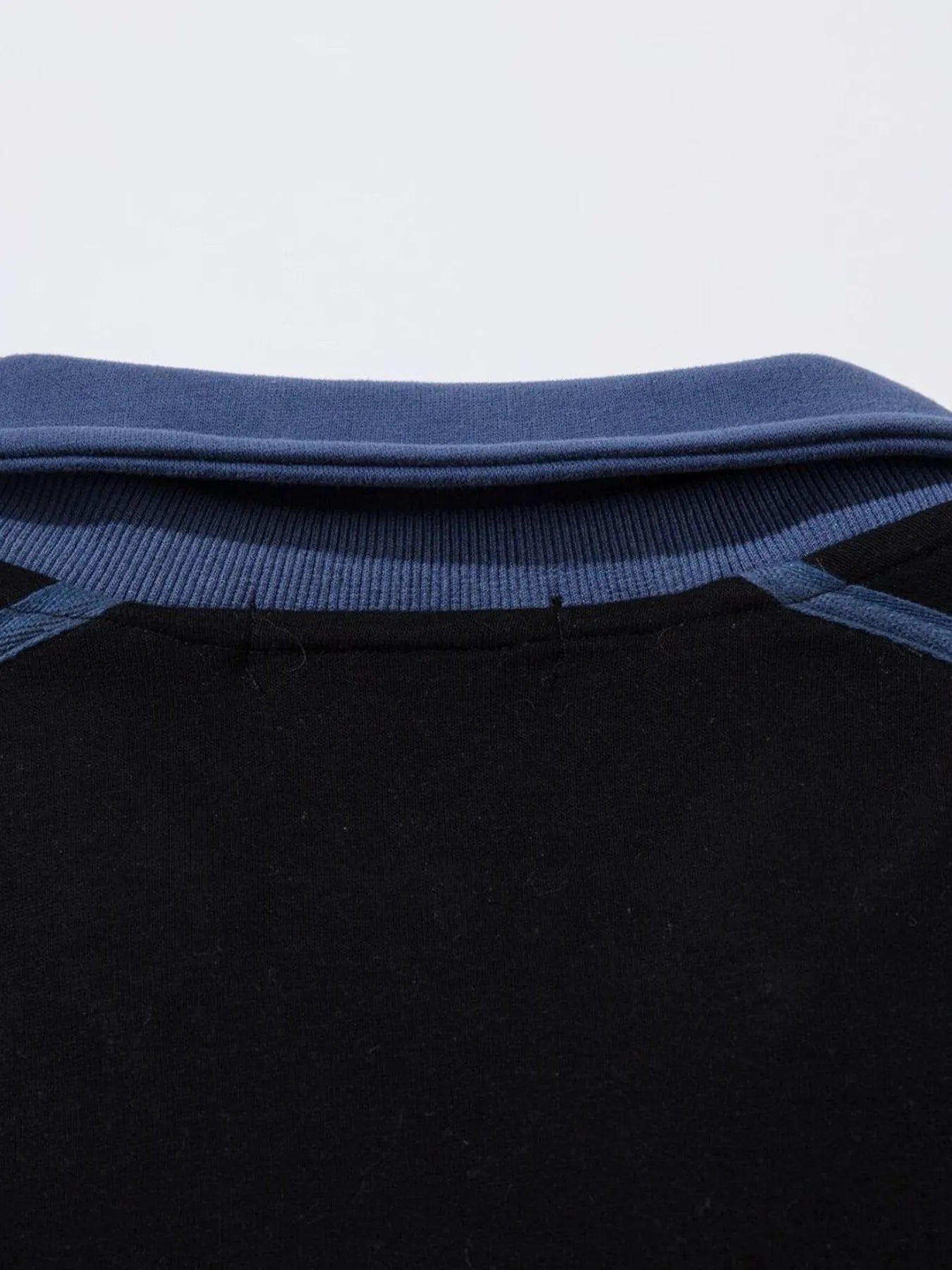 Men's Color Block Long Sleeve Polo with Number 9 Graphic