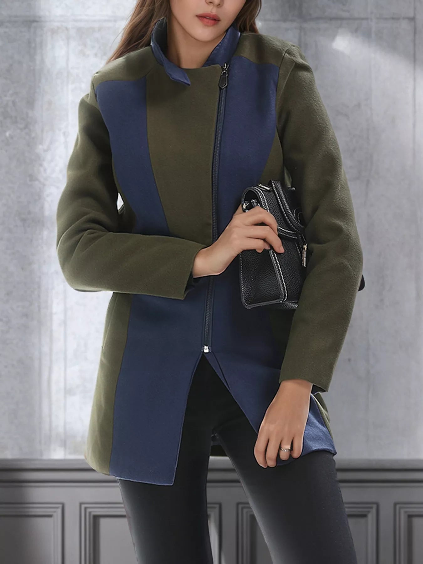 Color Block Zip Up Outerwear