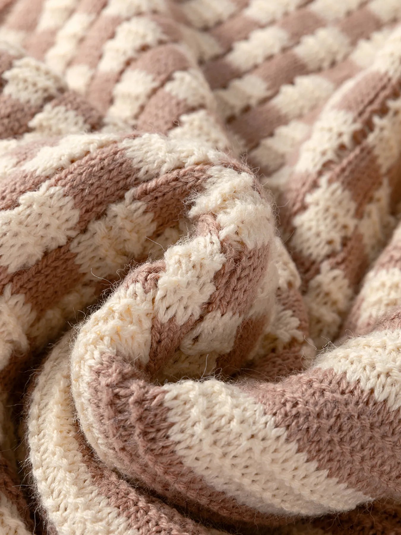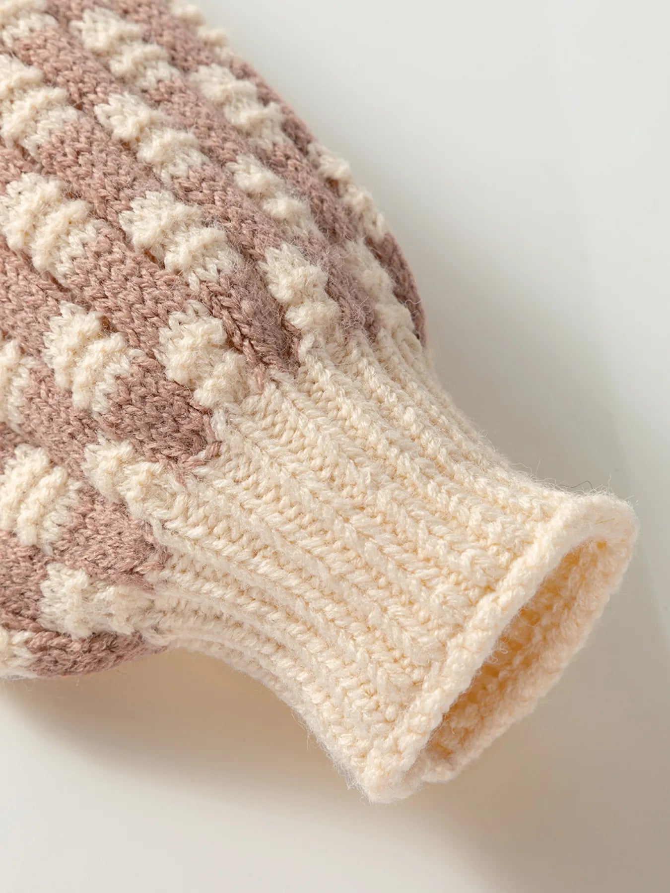 Stripe Checkerboard Drop Shoulder Balloon Sleeve Sweater